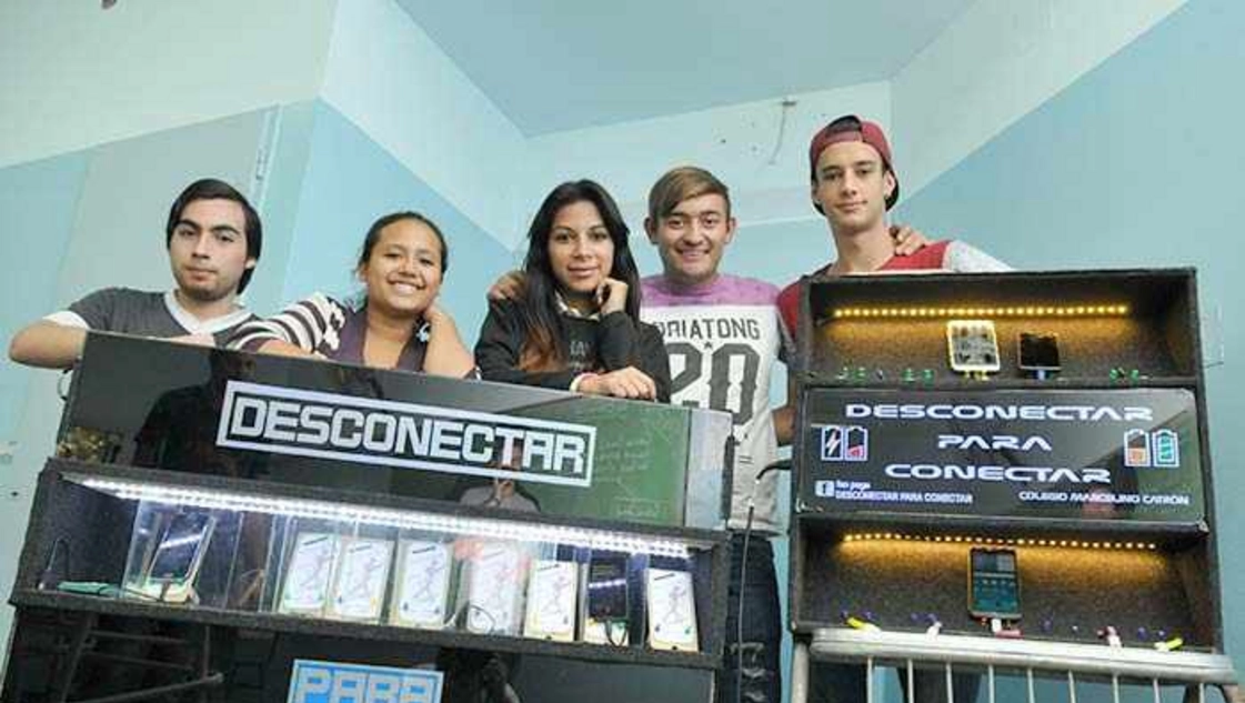 El proyecto "Desconectar para Conectar" puso en escena a uno de los protagonistas de esta era: el teléfono celular. Alumnos y alumnas idearon un cargador múltiple de baterías y el premio fue un viaje a México.