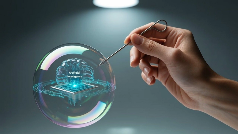 Se refiere a la teoría de que el actual auge de la Inteligencia Artificial, caracterizado por un optimismo exagerado e inversiones masivas, podría ser una burbuja especulativa similar a la “.com”, con un aumento desproporcionado en el valor de empresas de IA.