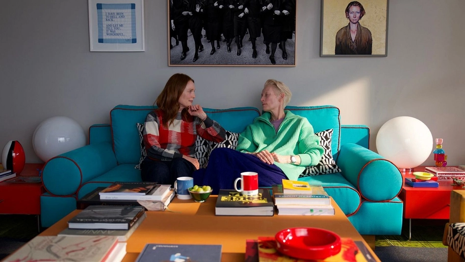El trabajo de Tilda Swinton y Julianne Moore es de una precisión admirable. Swinton construye un personaje donde la lucidez no excluye la fragilidad, sino que la vuelve más nítida; Moore, en cambio, encarna la incertidumbre del que asiste, del que acompaña sin certezas, sosteniendo una incomodidad que nunca se resuelve del todo. Entre ambas se abre un espacio de intimidad que no busca clausura: es, más bien, un territorio en suspensión.