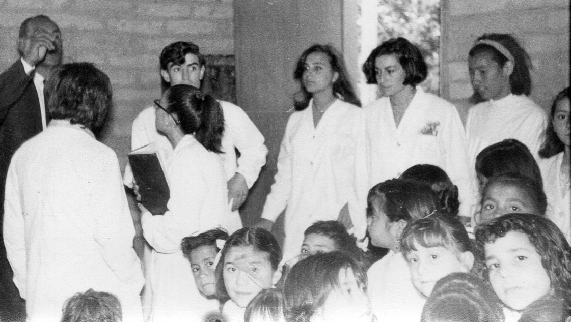 Recuerda su asombro, al conocer la infraestructura de la escuela: -Eran cuatro casillas alineadas en cuyo frente estaba el patio de tierra donde sobresalía el mástil y la campana, rodeado de arboledas. Detrás había un galpón de chapas y adobes, utilizado como salón de actos y dirección.