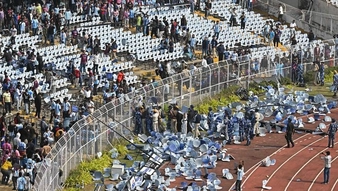 Según los medios locales, el campeón del mundo dio la vuelta al campo saludando a la multitud y luego abandonó inmediatamente el estadio, pese a que estaba previsto que jugara unos minutos. La ira de algunos aficionados, muchos de los cuales habían pagado más de 100 dólares, estalló en ese momento, derivando en destrozos, con asientos arrancados y botellas de agua arrojadas desde las tribunas. Incluso, algunos invadieron el terreno de juego.