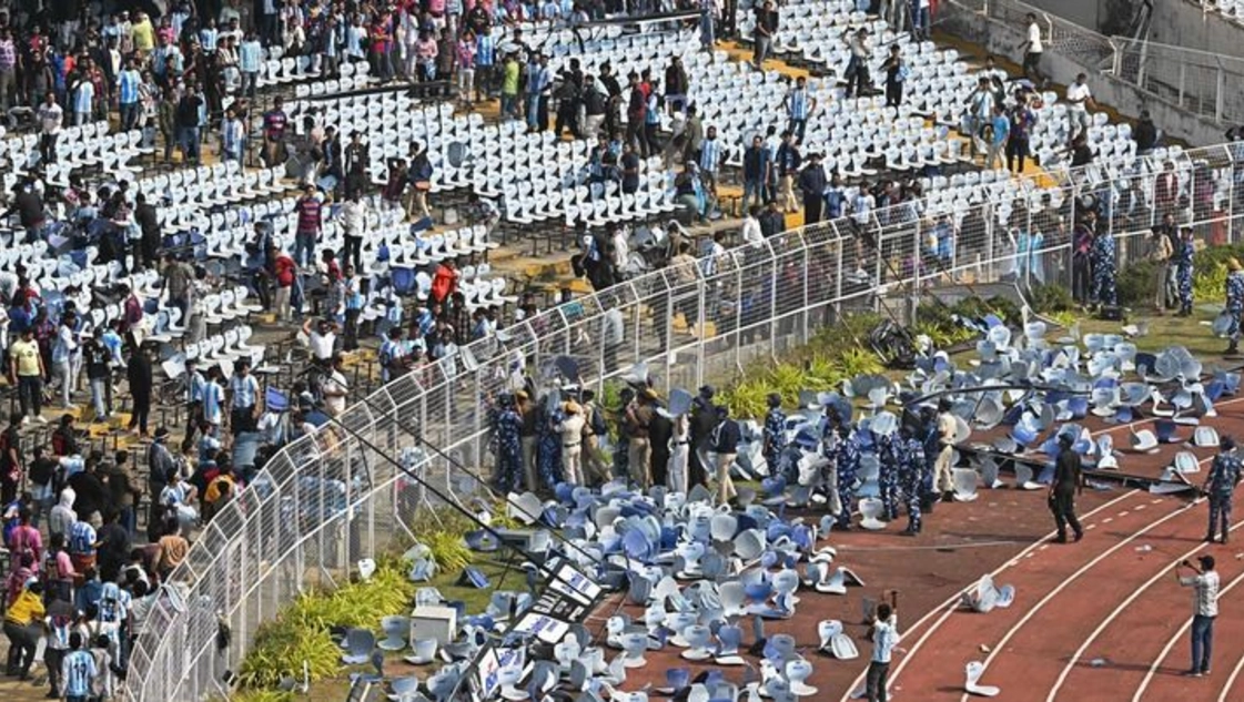 De viaje en el gigante asiático hasta el lunes, "La Pulga" fue recibido a lo grande a su llegada al estadio de Bengala Occidental por fanáticos exultantes que coreaban su nombre, en el marco de la denominada GOAT Tour, donde arribó junto a Rodrigo De Paul y Luis Suárez. Sin embargo, horas después, miles de seguidores con camisetas del jugador reunidos en el estadio Salt Lake de Calcuta se sintieron estafados por la brevedad del acto y se desataron los incidentes.