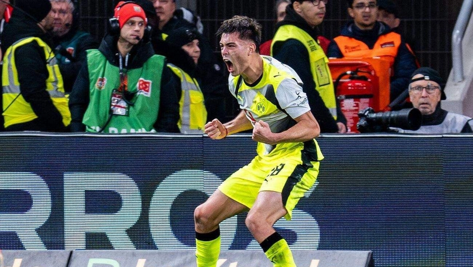 El defensor pampeano Aaron Anselmino marcó ayer su primer gol con la camiseta del Borussia Dortmund, con un gran cabezazo, encaminando así el triunfo 2 a 1 de su equipo el Bayer Leverkusen de los argentinos.