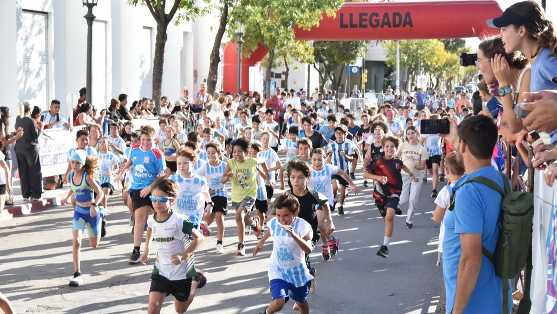 La Mini se vivió como una fiesta frente a la municipalidad de Santa Rosa, donde una gran cantidad de familias disfrutó de diferentes actividades y vibró al paso de las y los pequeños atletas, quienes entre las 16 y las 17 tuvieron sus carreras.