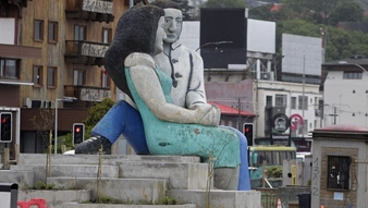 La costanera, donde fue emplazada la escultura, está en plena refacción desde hace un tiempo. Y la pareja de enamorados le da la espalda a los chicos que preguntan por ella, con la curiosidad trasladada por sus padres o abuelos, que por estas horas pensarán en ellos, desde el otro lado de la cordillera, fraseando el imborrable ‘Puerto Moooontt’ de Los Iracundos.