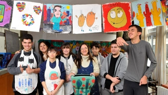 “El taller apunta a desarrollar la identidad, lo propio, los intereses individuales, sus gustos y deseos; haciendo hincapié en que puedan valorar lo que producen. No hay trabajos buenos o malos, sino que se estimula a que los chicos y las chicas se conecten libremente con lo que quieren expresar y trabajen despojados de imágenes, colores o formas estructuradas”, explica Pía Delfino, la docente a cargo de ‘Arte Propio’, el lugar donde adolescentes de la N° 2 y de otras escuelas desarrollan su creatividad. Como lo hacen Axel (16), Mateo (17), Luana (15), Angelina (14) y Jesús (14) en una tarde de otoño donde las nubes tapan el sol pero no los colores que explotan con cada intervención artística.
