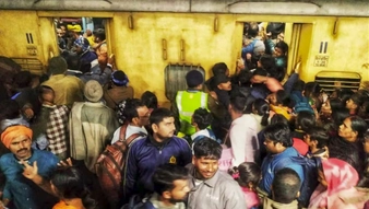 Una multitud de personas se encontraba en la estación para abordar un tren con destino al distrito de Prayagraj, en el estado septentrional de Uttar Pradesh, con el fin de participar en el baño sagrado en el "Triveni Sangam", la confluencia de los ríos Ganga, Yamuna y Saraswati, en el marco del festival espiritual "Maha Kumbh".