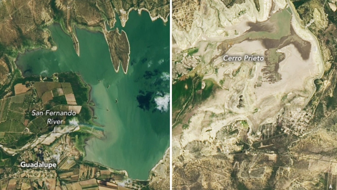 Las autoridades de la NASA publicaron una serie de imágenes comparativas, que fueron logradas por el satélite Landsat 8, de diversos períodos de tiempo de la presa de Cerro Prieto, en el estado mexicano de Nuevo León, con el objetivo de mostrar las severas consecuencias de la sequía que azota al país.