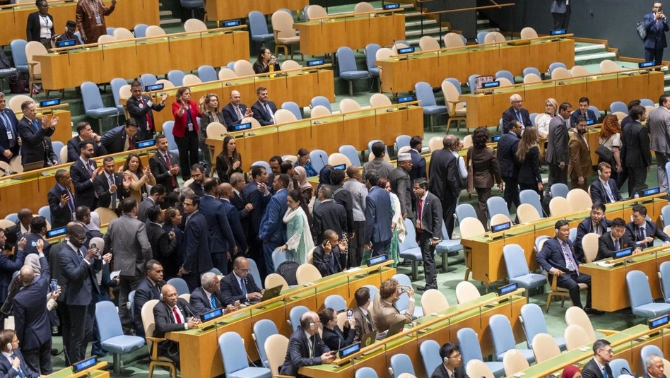 Delegaciones de numerosos países se levantaron de sus asientos cuando el primer ministro israelí Benjamín Netanyahu se posicionó frente al atril para ofrecer su discurso ante la Asamblea General de la ONU y abandonaron el salón como gesto de repudio y protesta por el genocidio del pueblo palestino. Cuando inició su discurso, la sala ya estaba prácticamente vacía. Una de las pocas delegaciones que permaneció fue la argentina.