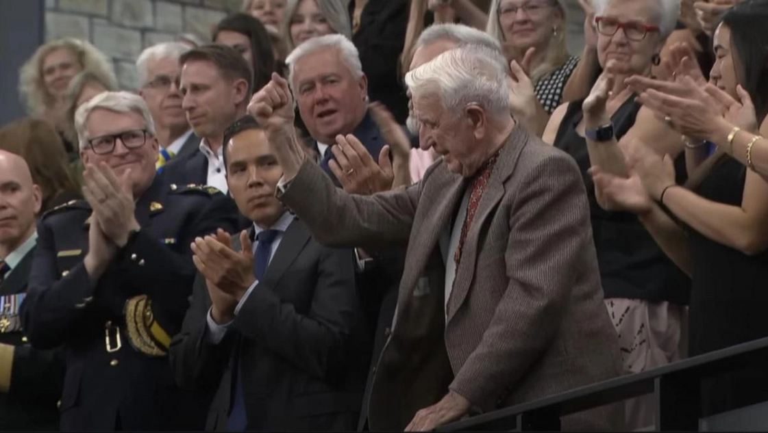 Los legisladores canadienses vitorearon a Hunka y Zelenski levantó el puño en señal de reconocimiento mientras el nonagenario saludaba desde la galería durante dos ovaciones de pie separadas.