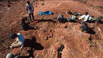 La funcionaria precisó que el sitio Auca Mahuevo tiene más de 70 millones de años y está vigilado por quienes viven en el lugar con un guardia pagado por el Estado para preservarlo, e indicó que las investigaciones recibieron aportes de National Geographic, CONICET y de Zaragoza (España) para hacer el análisis de los materiales.