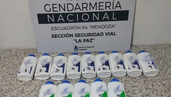 A principios de octubre, efectivos de Gendarmería realizaban un operativo de control sobre la Ruta Nacional 7, altura del peaje de la localidad mendocina de La Paz, cuando detuvieron un micro que realizaba la ruta Mendoza-Buenos Aires. Maximiliano Ariel Acosta, de 42 años, viajaba con 18 envases de talco y llamó la atención de los efectivos, que realizaron pruebas con reactivos que dieron positivo y el hombre quedó detenido.
