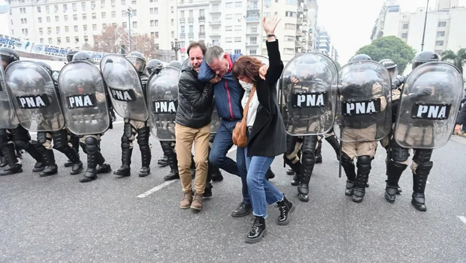 En tanto, fuera del Congreso de la Nación el eje de tensión se dio por los serios incidentes entre las fuerzas de seguridad federales y manifestantes de izquierda y sindicatos .