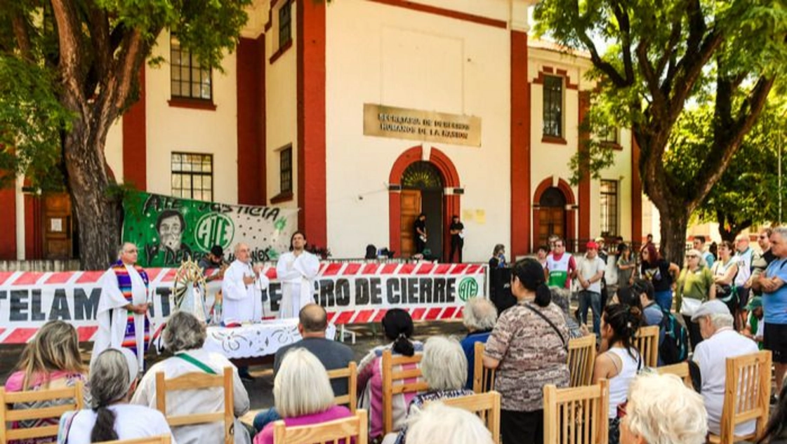 En solidaridad con los trabajadores de la SDH, hubo una misa oficiada por los sacerdotes Lorenzo “Toto” de Vedia, Nicolás “Tano” Angelotti y Jorge Marenco. En la actividad estuvo el Premio Nóbel Adolfo Pérez Esquivel, referente del Servicio Paz y Justicia (Serpaj) y co-presidente de la Comisión Provincial por la Memoria (CPM). Pérez Esquivel denunció que en la ex ESMA hubo tareas de inteligencia ilegal por parte de la policía –posiblemente la federal– en el “abrazo” que se hizo el viernes 27 de diciembre.