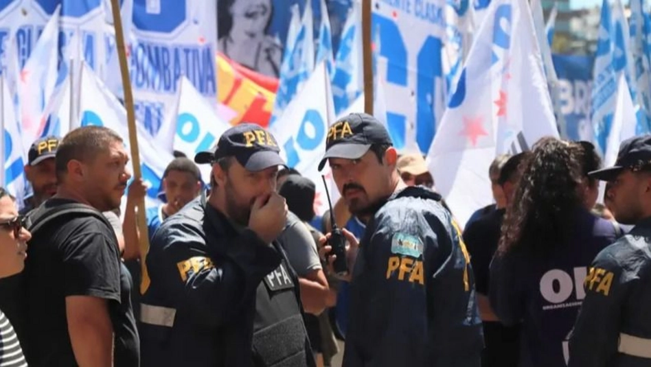 A las 15, un cordón de efectivos de la Policía de la Ciudad desplazó con sus escudos hacia la avenida 9 de Julio a cientos de manifestantes que aún permanecían en Corrientes y Uruguay.