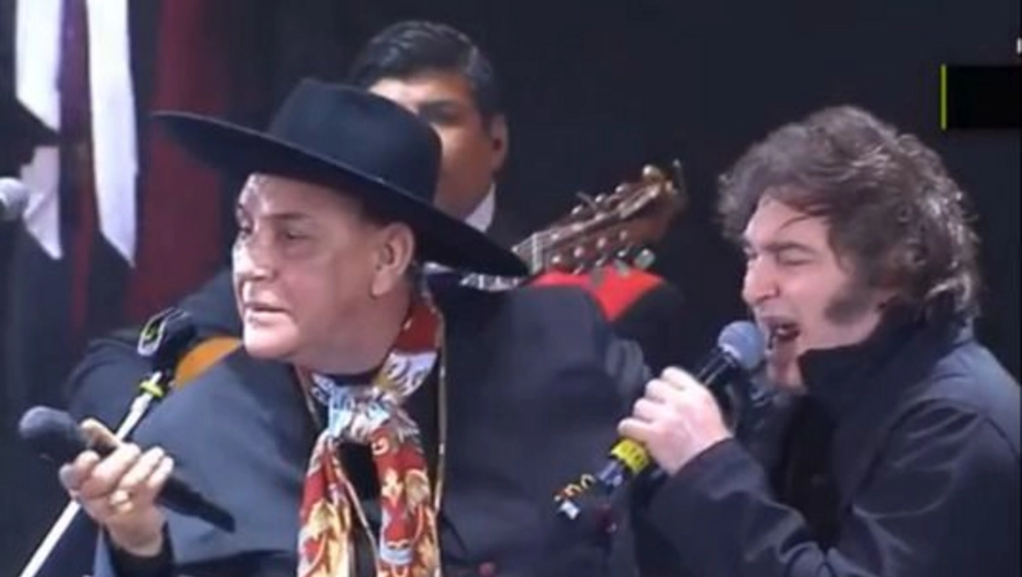 Ante la invitación de Palavecino para cantarlo a dúo, el Presidente intentó excusarse inicialmente alegando que "no le da el piné" y que él es un "amateur" al lado del folclorista. Sin embargo, tras la insistencia del músico —quien le recordó su pasado rockero y cantando temas de Leonardo Favio—, Milei subió al escenario.