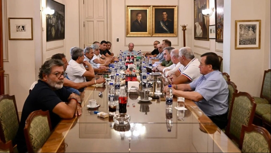 El encuentro tuvo lugar en la sede de UPCN, donde el jefe de los estatales, Andrés Rodríguez, hacía de anfitrión. Convocaron los triunviros Sola, Cristian Jerónimo y Octavio Arguello.