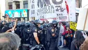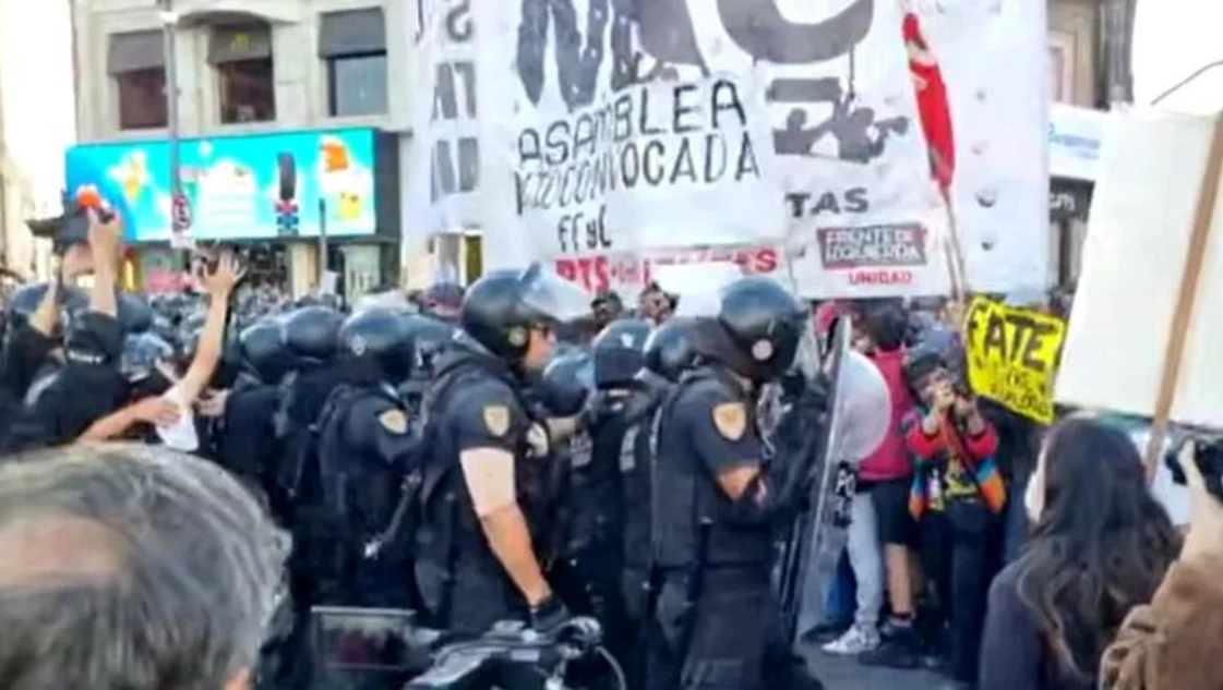 Según C5N, poco antes de las 8 de la mañana, la tensión comenzó a escalar ya que el operativo anti-piquetes dispuesto en el Gobierno empezó a presionar para evitar el avance de los manifestantes hacia la avenida Corrientes.