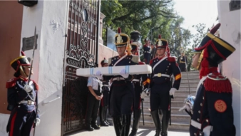 El traslado del sable corvo del general José de San Martín comenzó desde el Museo Histórico Nacional hacia el Regimiento de Granaderos a Caballo.