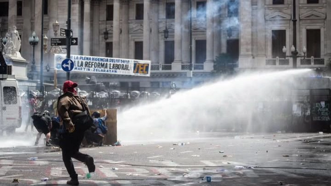 Mientras se debatía el proyecto de la reforma laboral en el Congreso -iniciativa que fue aprobada a la madrugada de este jueves- las fuerzas de seguridad reprimían a los manifestantes y a la prensa que cubría la marcha.