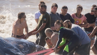 Rescatan y devuelven al mar una ballena de 4 toneladas varada en Villa Gesell