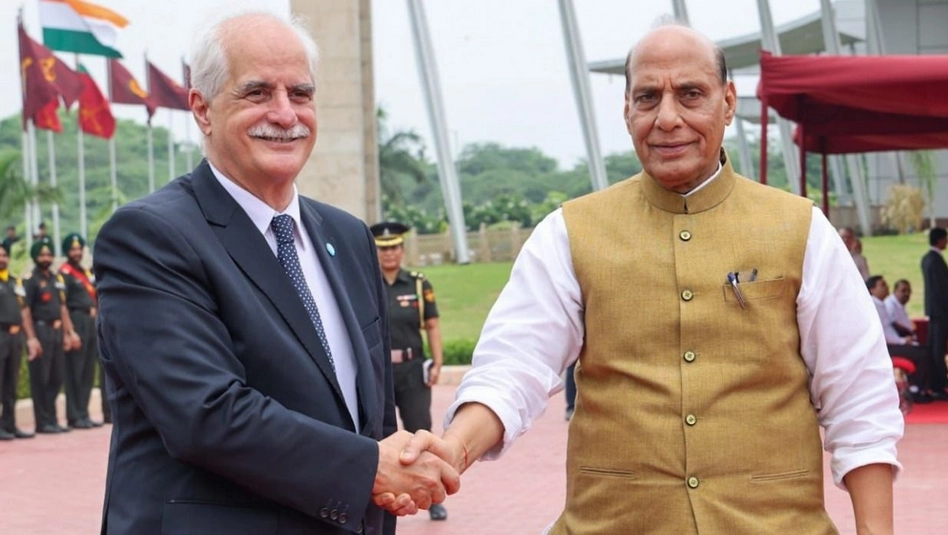 Previamente al encuentro, el titular de la cartera rindió honores en el Monumento Nacional de Guerra en Nueva Delhi y luego pasó revista de la Guardia de Honor del Manekshau Centre.