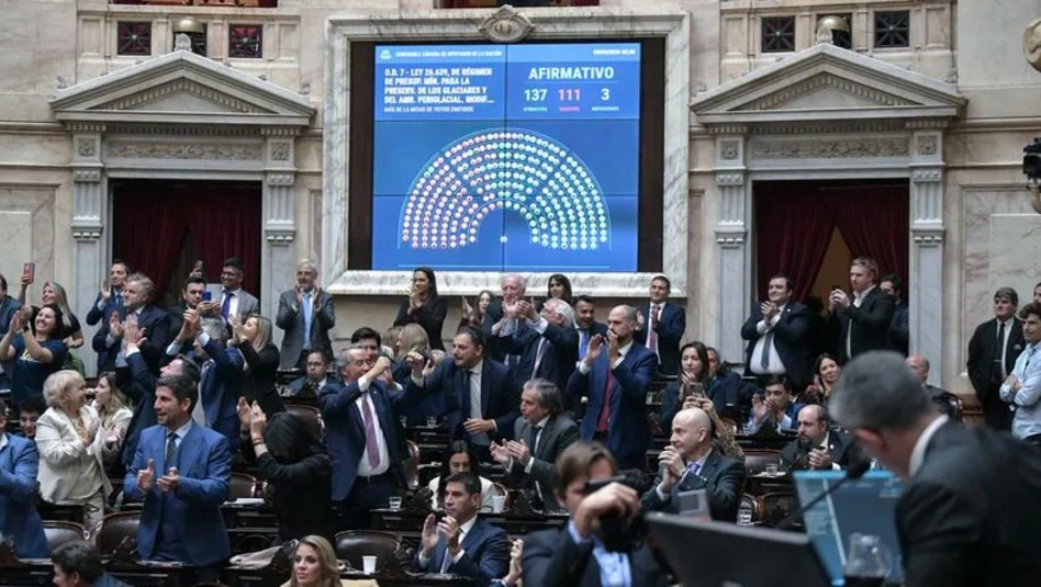 La Cámara de Diputados aprobó este miércoles la reforma a la Ley de Glaciares impulsada por el Gobierno, tras una maratónica sesión que se desarrolló en medio de protestas y represión policial en las inmediaciones del Congreso.