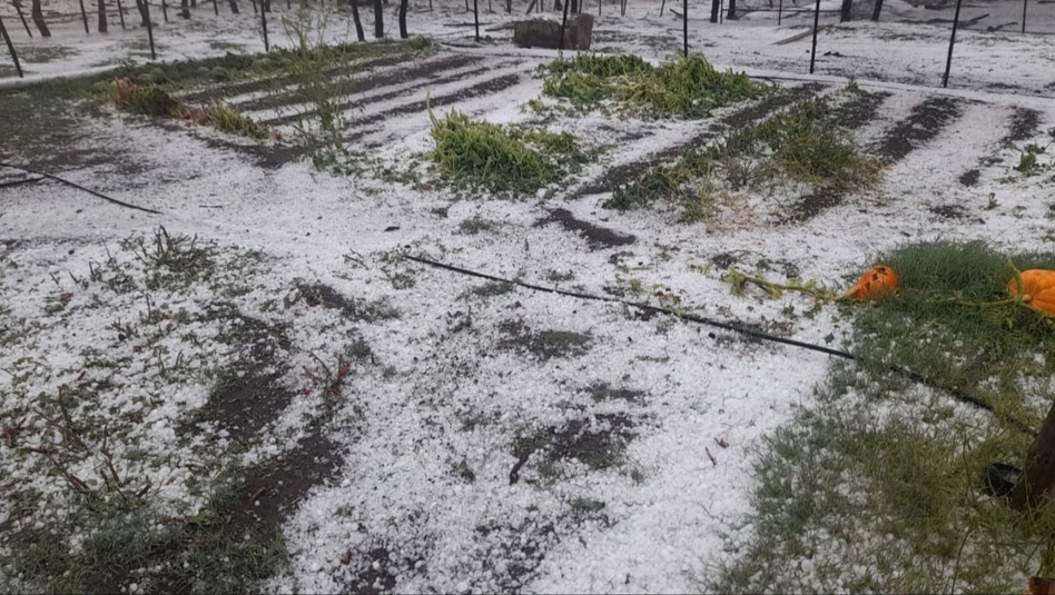 La ciudad mendocina de General Alvear fue azotada el viernes por una fuerte tormenta de agua, viento y granizo (en algunos sectores, de gran tamaño). Los productores rurales señalaron que las pérdidas fueron totales y en algunas zonas se acumularon hasta 20 centímetros de piedra.