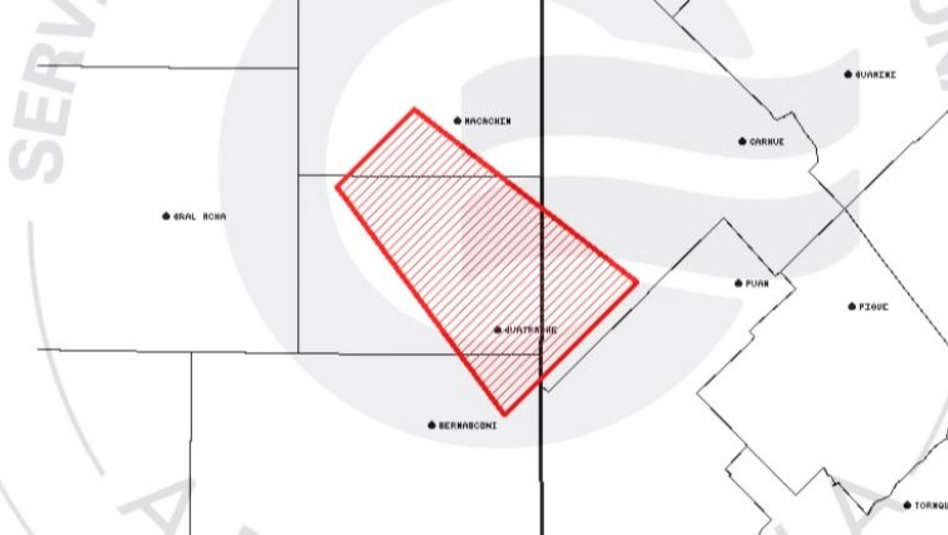 Este sábado por la mañana el Servicio Meteorológico Nacional emitió un aviso a corto plazo por tormentas fuertes con lluvias intensas y ocasional caída de granizo para Atreucó, Guatraché y Hucal.