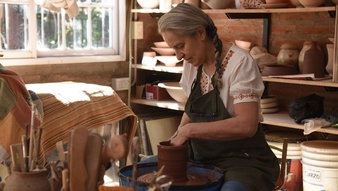 Mirta Funaro es una referencia de la cerámica artesanal de La Pampa y todo su trabajo y su arte se combina hoy en su taller “Tierra Viva” en donde crea y vende sus piezas de autor, y también a través de un emprendimiento único en la provincia como es la fabricación de urnas funerarias.