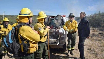 "Tuvimos un encuentro con nuestros bomberos y brigadistas para darles un reconocimiento y apoyo a su tarea, con ese compromiso y esa capacidad profesional tal que estamos lamentando una enorme cantidad de hectáreas quemadas pero no vidas perdidas", afirmó ayer el ministro Bergman en una comunicación telefónica que mantuvo con LA ARENA al concluir una de las reuniones que concretó durante la visita. "Esto es gracias al valor y a la capacidad de los bomberos voluntarios, policías y los brigadistas que dependen del Ministerio", acotó.