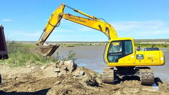25 DE MAYO/ REDACCIÓN - El Ente Provincial del Río Colorado, informó que están haciendo tareas de movimiento de suelo para reafirmar la defensa en la vera del río Colorado a fin de evitar desbordes. Se trata de una tarea habitual ya que, en éste caso, están asegurando el sector de captación de agua para el sistema de servicio de provisión a la ciudad de 25 de Mayo.