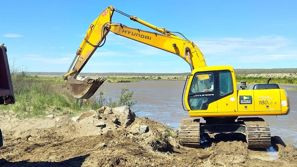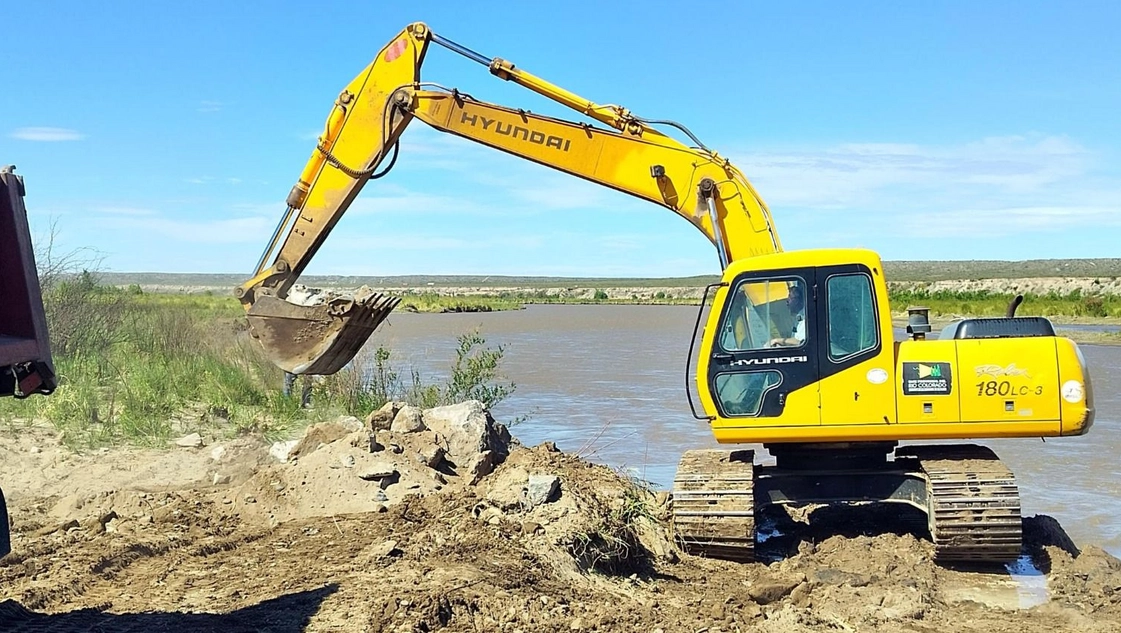 En las fotografías que la institución estatal subió a sus cuentas en redes sociales se ve la maquinaria pesada en plena evolución a la vera del río Colorado.
