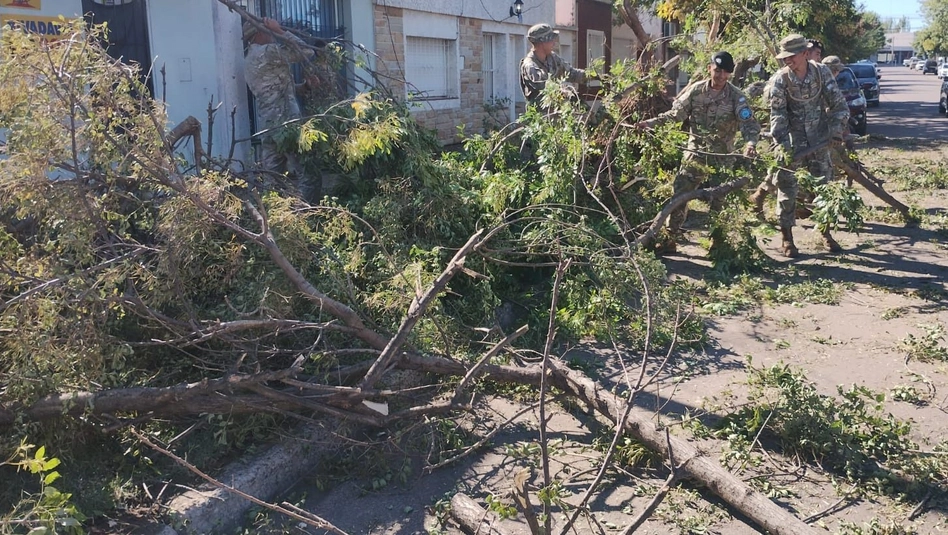 El trabajo desarrollado por el Ejército se suma al efectuado por numerosas cuadrillas del municipio y la CPE entre otros sectores que trabajan para despejar las zonas y asistir a las personas que más lo necesitan a raíz de las consecuencias del temporal.