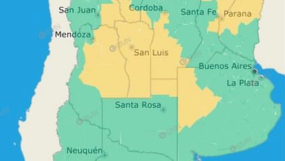 Por otro lada, para la provincia de Mendoza, el alerta rige para General Alvear, San Rafael, La Paz, Tunuyan, Tupungato, entre otras.