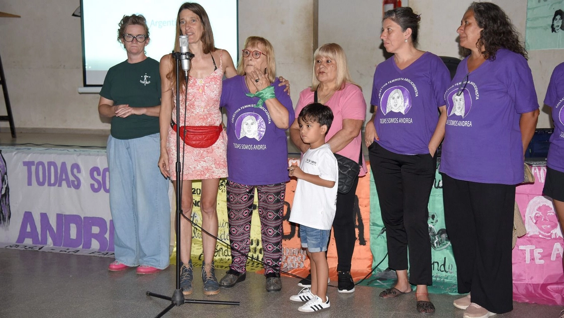 El acto para recordar a la víctima se realizó salón de usos múltiples del barrio 5.000, en Bertera y General Acha. La mamá de Andrea, Julia Ferreyra, y Emanuel -el hijo de López y Purreta- estuvieron presentes en el lugar.