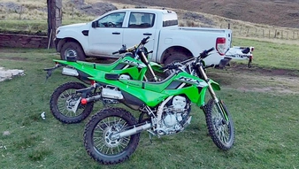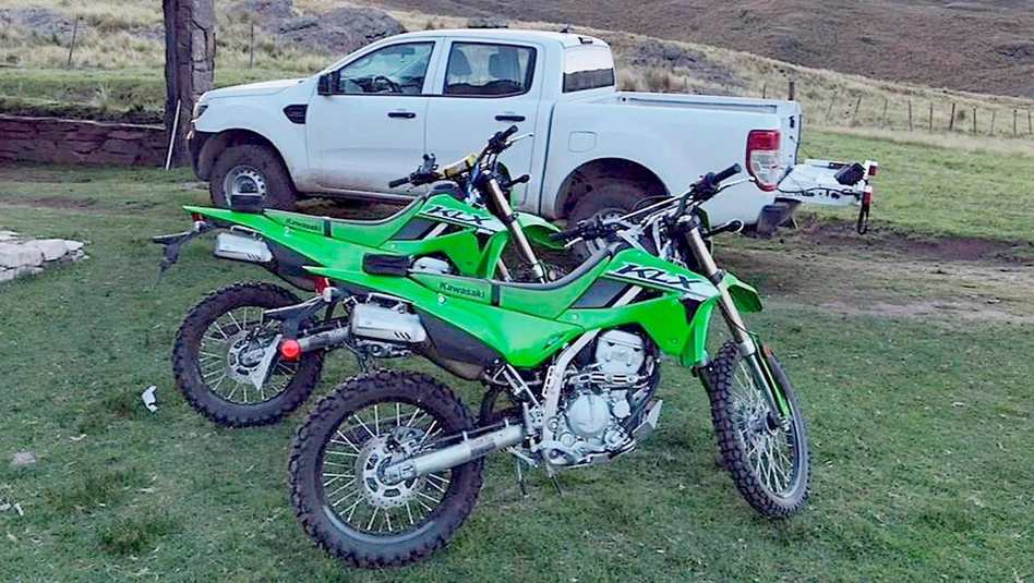 Los delincuentes se llevaron una Ford Ranger blanca y una moto marca Kawasaki KLX 300 verde.