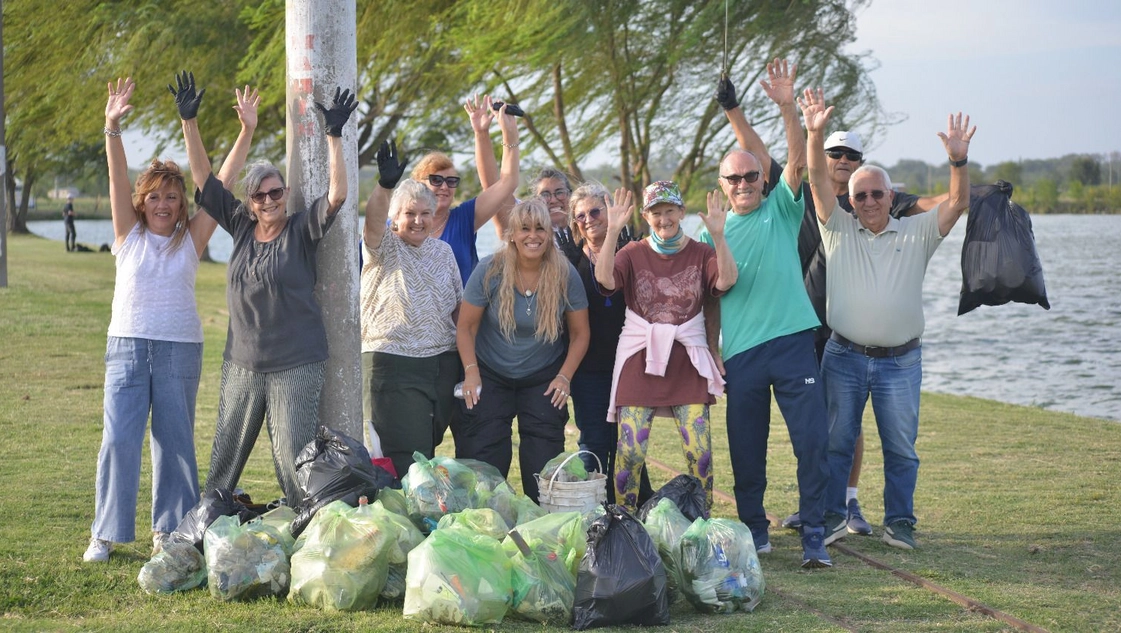 Con guantes, bolsas para la basura y picos para pinchar plásticos, integrantes de la Fundación Sri Sathya Global Council de Argentina se reunieron en el Parque Recreativo Laguna Don Tomás para recolectar basura.