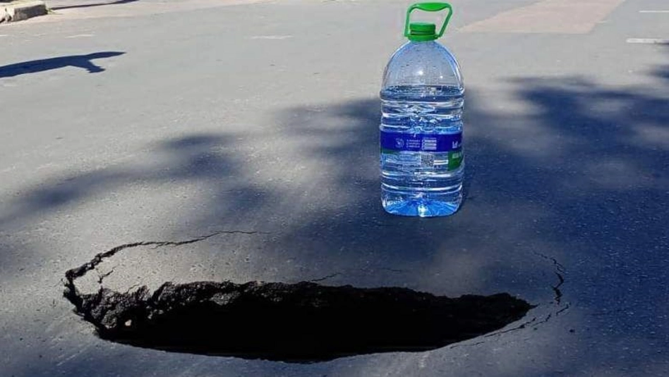 El asfalto cedió en pleno centro y generó un pozo en el medio de la calle ayer por la tarde. Por esta situación, vecinos decidieron señalizar por su cuenta hasta que interviniera la Municipalidad de Santa Rosa.