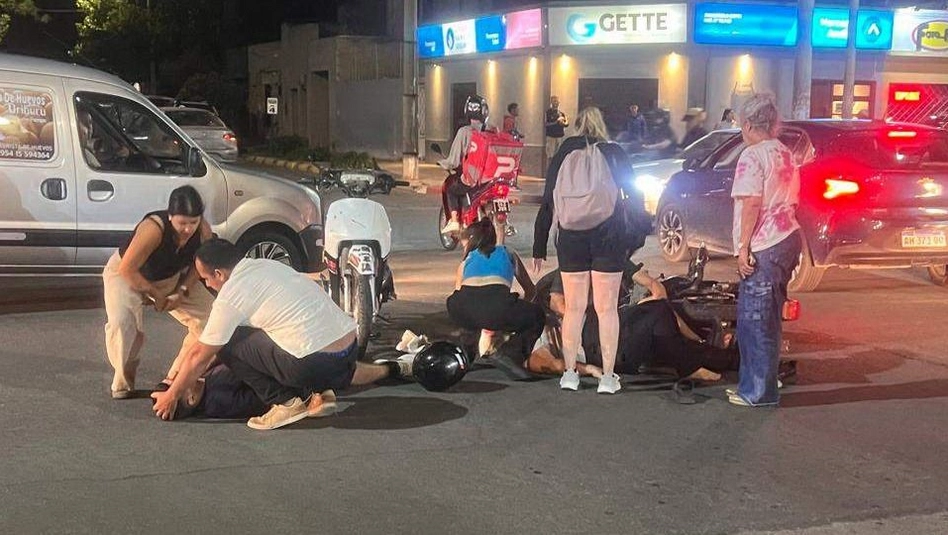 Durante la noche de ayer domingo se produjo un choque de motos en el cruce de la avenida San Martín y la calle Oliver de la capital pampeana.