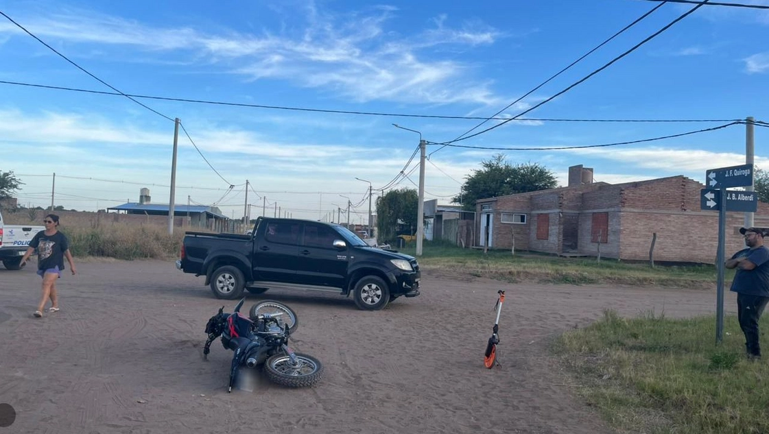 Los voceros relataron que la pick up era conducida por un hombre que circulaba por la calle Alberdi, desde el este al oeste, y al llegar a la intersección de Quiroga, colisiona con la motocicleta al mando de una mujer que iba acompañada por otra.