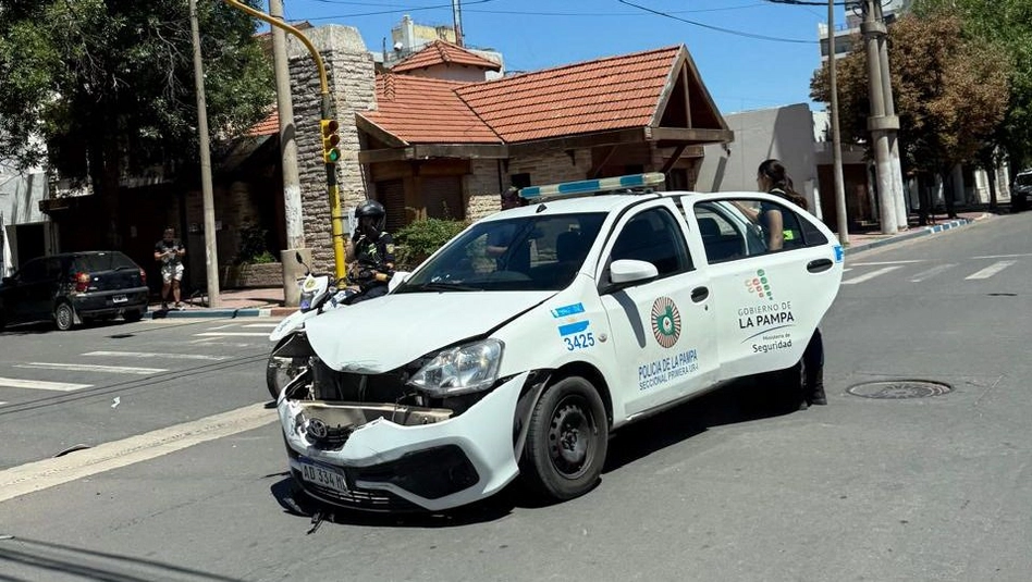 Un patrullero de la Seccional Primera colisionó contra otro vehículo en el centro santarroseño. Afortunadamente, no personas heridas.
