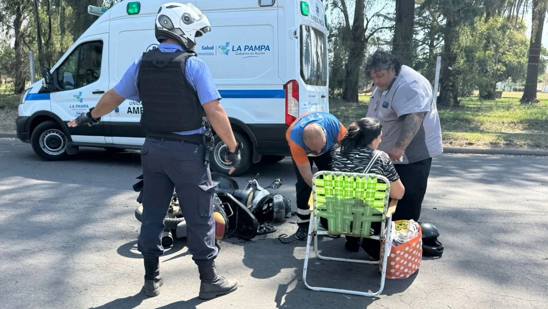 El hecho ocurrió cerca de las 11, en la intersección de las calles 40 y 23 de esta ciudad, frente al predio de la Sociedad Rural. En el lugar, una mujer que viajaba a bordo de una moto de 110 cc junto a su pequeña hija, fue embestida por otra motocicleta que avanzaba por la calle impar. A raíz del fuerte impacto, la mujer y la niña cayeron pesadamente al pavimiento y sufrieron cortes y algunos golpes. En cambio, el conductor de la otra moto, levantó su vehículo, y sin preocuparse por el estado de salud de las ocupantes del otro rodado, se dio a la fuga del lugar.