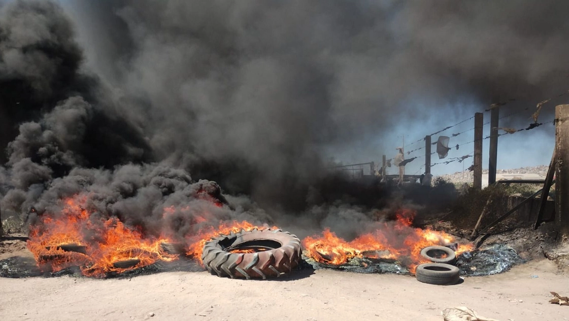 Los manifestantes encabezaron la protesta con una quema de neumáticos con el objetivo de impedir el ingreso de los camiones de recolección de residuos lo que podría en principio afectar la habitual tarea del servicio.