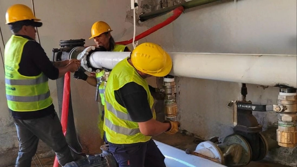 En cuanto a cañerías, se reemplaza el 100% de las líneas de aspiración e impulsión, además de válvulas de retención y esféricas. También se ejecuta el nuevo conexionado de bombas y la puesta en servicio de cuatro bombas de impulsión, lo que permite optimizar el desempeño general del sistema.