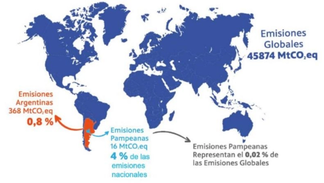 El "Plan de Respuesta Provincial al Cambio Climático" al que accedió LA ARENA revela que, según los valores más actualizados correspondientes a la desagregación subnacional del Inventario Nacional de Gases de Efecto Invernadero (INGEI) para el año 2018, La Pampa "contribuye más que modestamente a las emisiones globales de GEI con 15,8 millones de toneladas de CO2 equivalente (MtCO2eq), representando el 0,02% de las mismas y alrededor del 4% del total nacional".