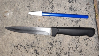 Tras la denuncia respectiva, los agentes de la Seccional Tercera llegaron enseguida al lugar y comprobaron que la camioneta en cuestión, Isuzu color verde, propiedad de los hermanos, tenía un daño punzante en la rueda delantera. Al requisar al detenido, le encontraron en el buzo un cuchillo con mango negro de unos 15 centímetros de largo.