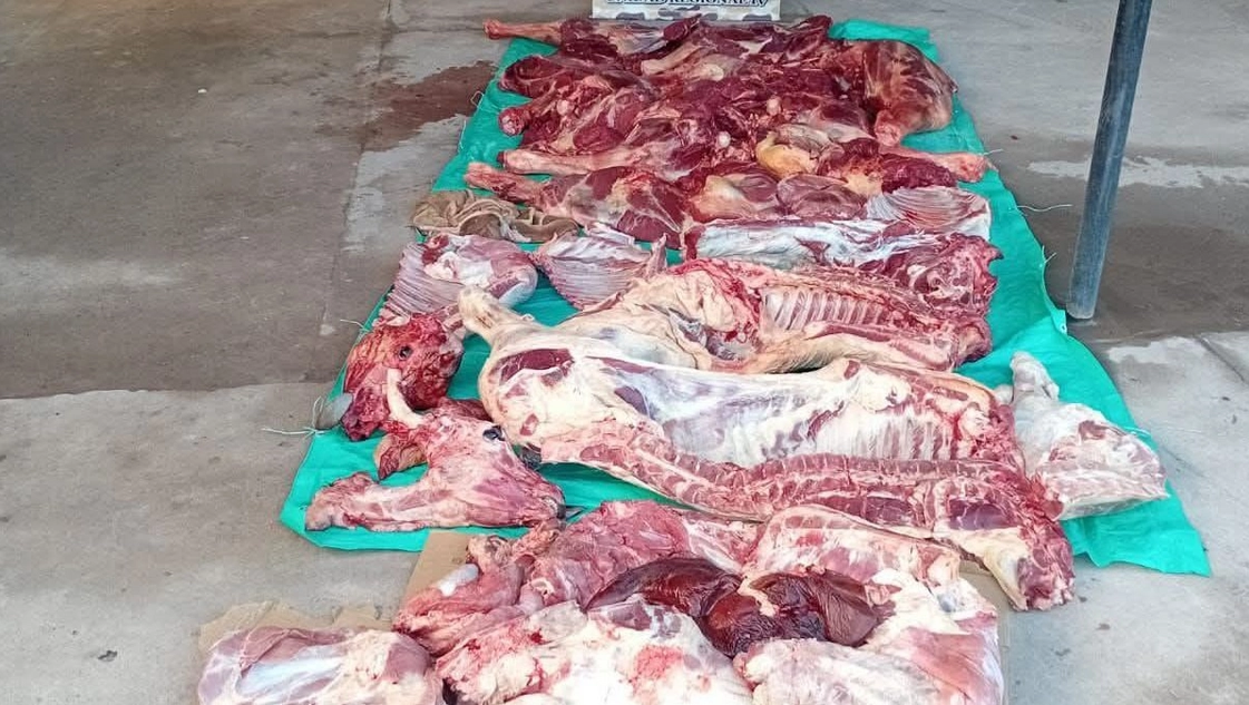 La información señala que durante la requisa, los efectivos hallaron 228 kilogramos de carne bovina transportada en condiciones precarias. Además del producto alimenticio, las autoridades procedieron al secuestro de una sierra carnicera, cuchillos de corte, y también el vehículo utilizado para el traslado.