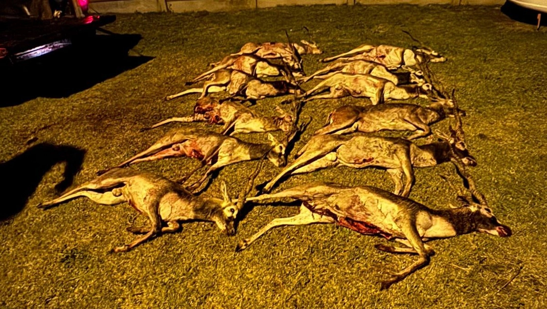 Durante el operativo, se detuvo a un vehículo Pick Up, marca VW Amarok, en el que se transportaban tres personas, incluyendo un menor de edad. En la caja de carga del vehículo se encontraron 12 antílopes muertos.