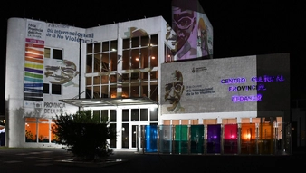 En conmemoración del Día Internacional de la No Violencia, el Gobierno de La Pampa iluminó de arte a la ciudad con dos instalaciones. Una de las intervenciones se hizo sobre la fachada del Centro Cultural Medasur y la otra en la Casa de Gobierno.